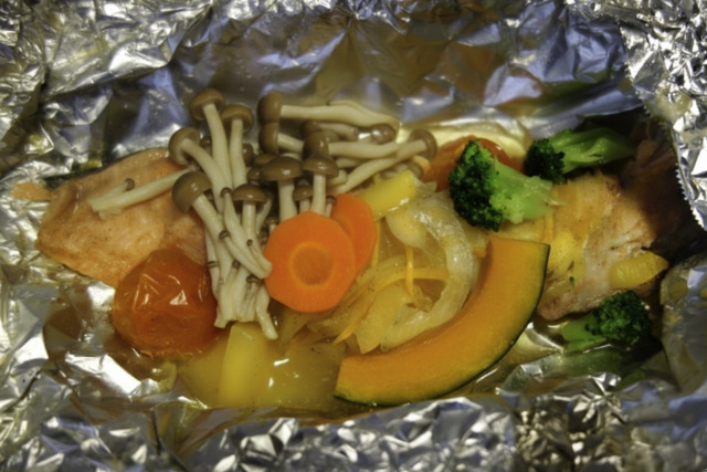 鮭・鶏肉のホイル焼き